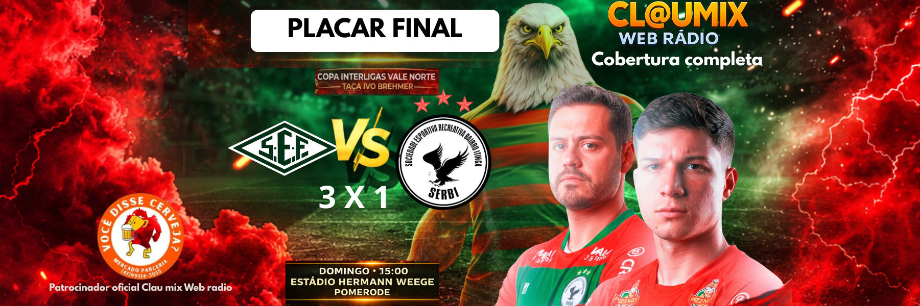A SERBI foi derrotada pelo Floresta por 3 a 1, em Pomerode, em partida válida pela 4ª rodada da Copa Interligas Vale Norte 2026.